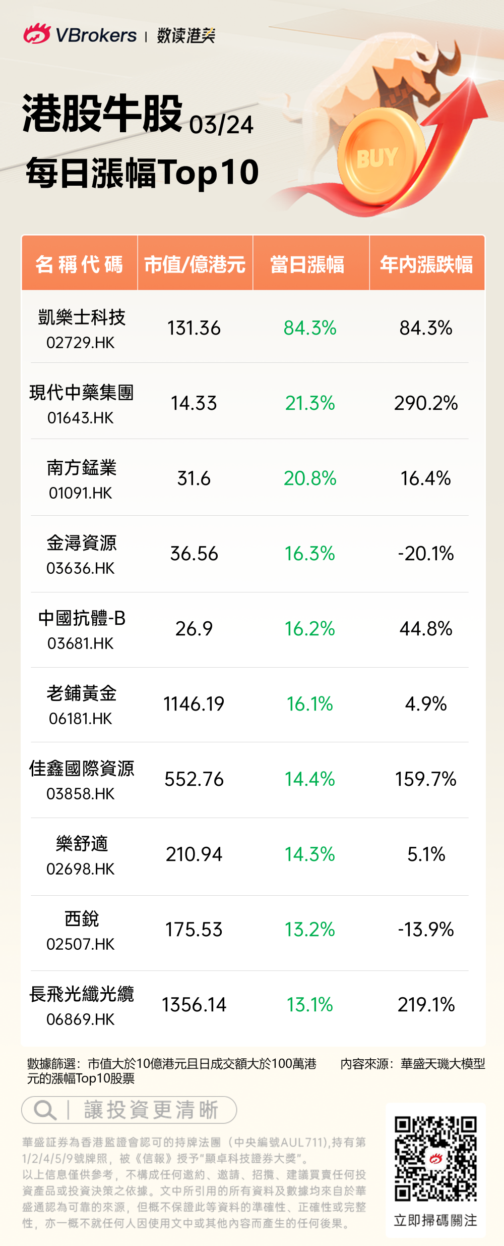 發仔统计了每日港股涨幅Top10,具体名单如下: