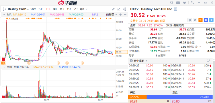 作为前车之鉴,第一大持仓为SpaceX的Destiny Tech100封闭式基金2024年上市后曾迎来两波较大规模的疯狂炒作,最新交易价格只有峰值时期的四分之一。