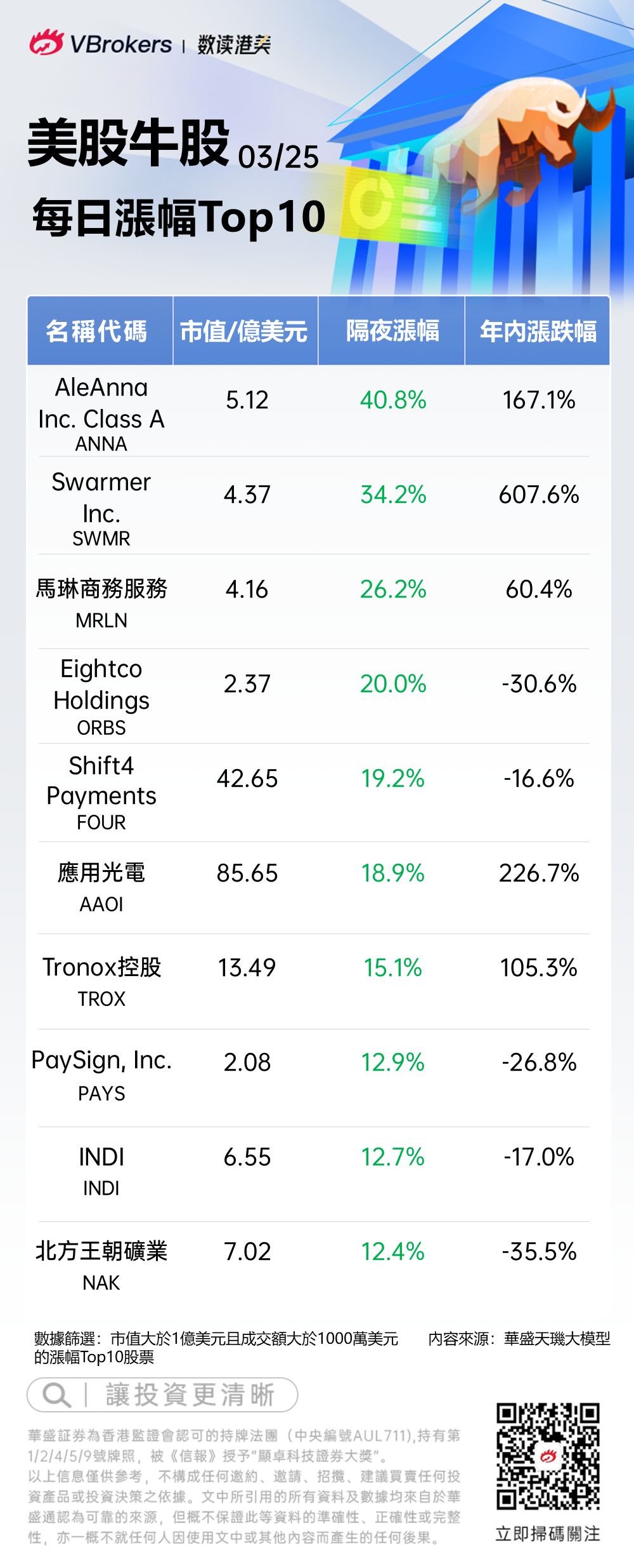 编者按:《美股牛股》栏目旨在追踪每日美股市场涨幅TOP10牛股,紧抓涨势迅猛的个股,助力投资者快速把握美股交易机会。