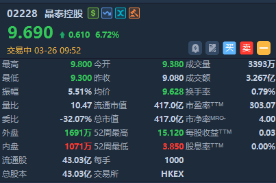 智通财经APP获悉,晶泰控股绩后涨超6%,报9.69港元,成交额3.27亿港元。