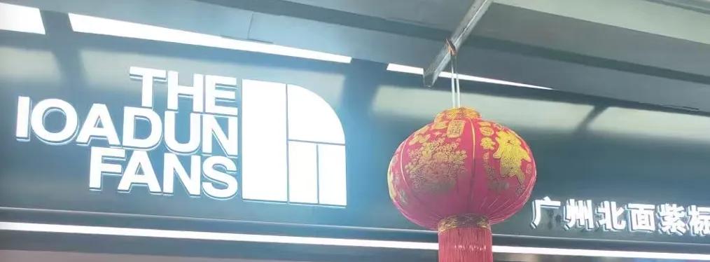 这才看清楚,店头写的是“THE LOADUN FANS”,旁边一行中文字是:广州北面紫标服饰有限公司。但是LOGO和北面长得挺像,都是那处令人心拔凉拔凉的“山坡”。