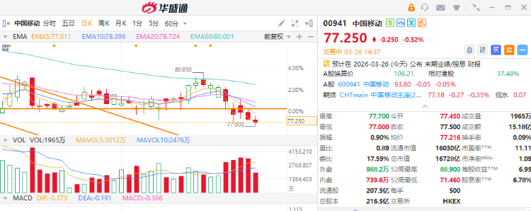 中国移动亦将于今日盘后公布业绩,两手准备中移购 $26815.HK ,行使价92元、2026年12月到期;中移沽 $22002.HK ,行使价70.9港元、2026年7月到期。