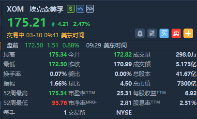油气股集体走强, 埃克森美孚涨超2%、西方石油、雪佛龙涨超1%;