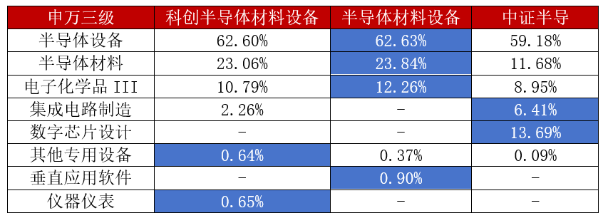 结合申万三级行业的细分数据,这三个指数的差异可以总结如下: