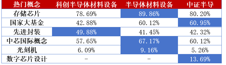 通过概念暴露,可以看到这三个指数的风格差异更为鲜明。如果把这三个指数比作半导体领域的“战队”,那么科创半导体材料设备指数是一支精锐的特种小队,专注于高难度的技术攻关。它是唯一在先进封装(49.88%)上占比超过半数的指数。这说明它更侧重于后道半导体设备的高精尖技术突破。虽然它也有存储概念,但相比起后两者,它更像是一个专注于技术突围的“偏科生”,在先进封装这个细分赛道上浓度最高。