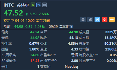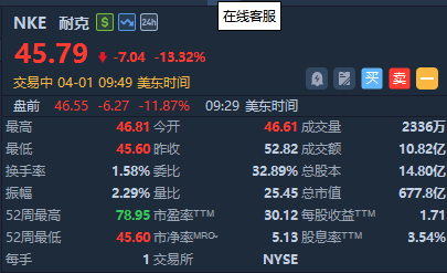 华盛资讯4月1日讯,英特尔盘初大幅拉升至超6%;耐克绩后跌超13%。
