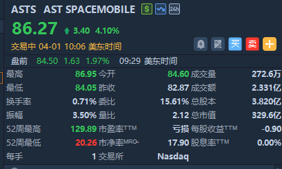太空概念集体走强, $ASTS 涨超4% 、 $RKLB 涨超2%。