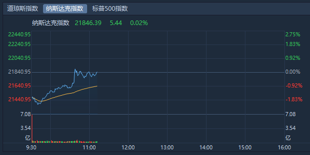 北京时间4月2日晚间,美股三大指数低开后,集体拉升,一度全线翻红,截至23:12,纳指涨0.02%,标普500指数涨0.1%,道指跌0.02%。