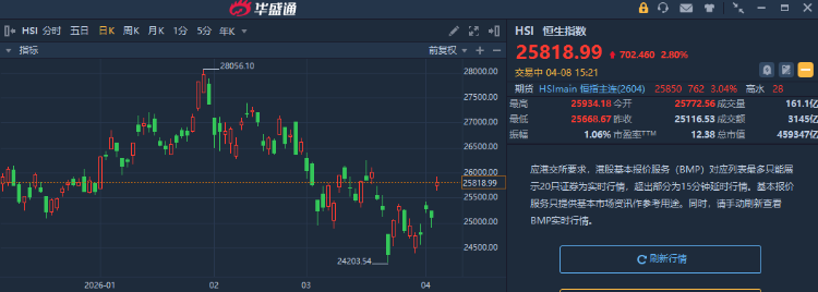 美国与伊朗同意停火两星期,环球股市急弹,港股长假期后亦都跟随外围造好,恒指高开656点后,暂时最多升逾750点,高位迫近25,900点,重上廿天线兼见大约三星期高位。