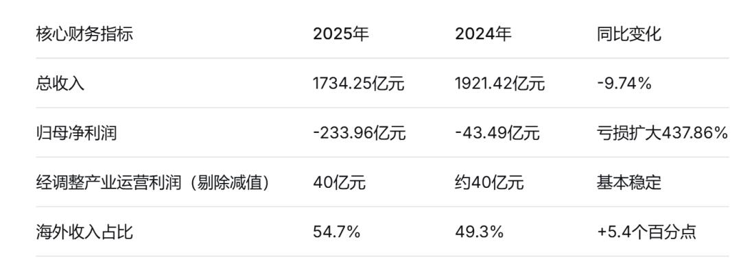 账面数字确实有点吓人。总收入同比降了9.74%,净亏损从去年的43.49亿飙到233.96亿,翻了5倍还多。