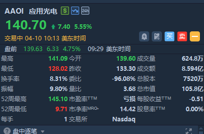 光通信概念集体拉升!应用光电涨超5%, $COHR 涨超2%,Ciena科技、Lumentum控股涨超1%。