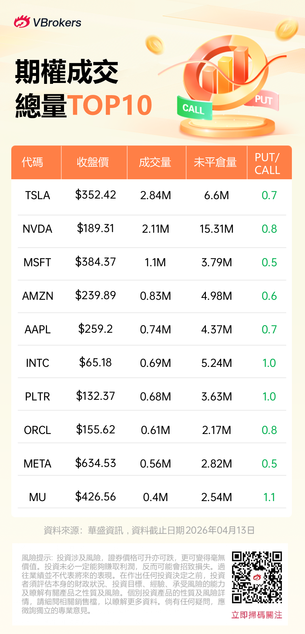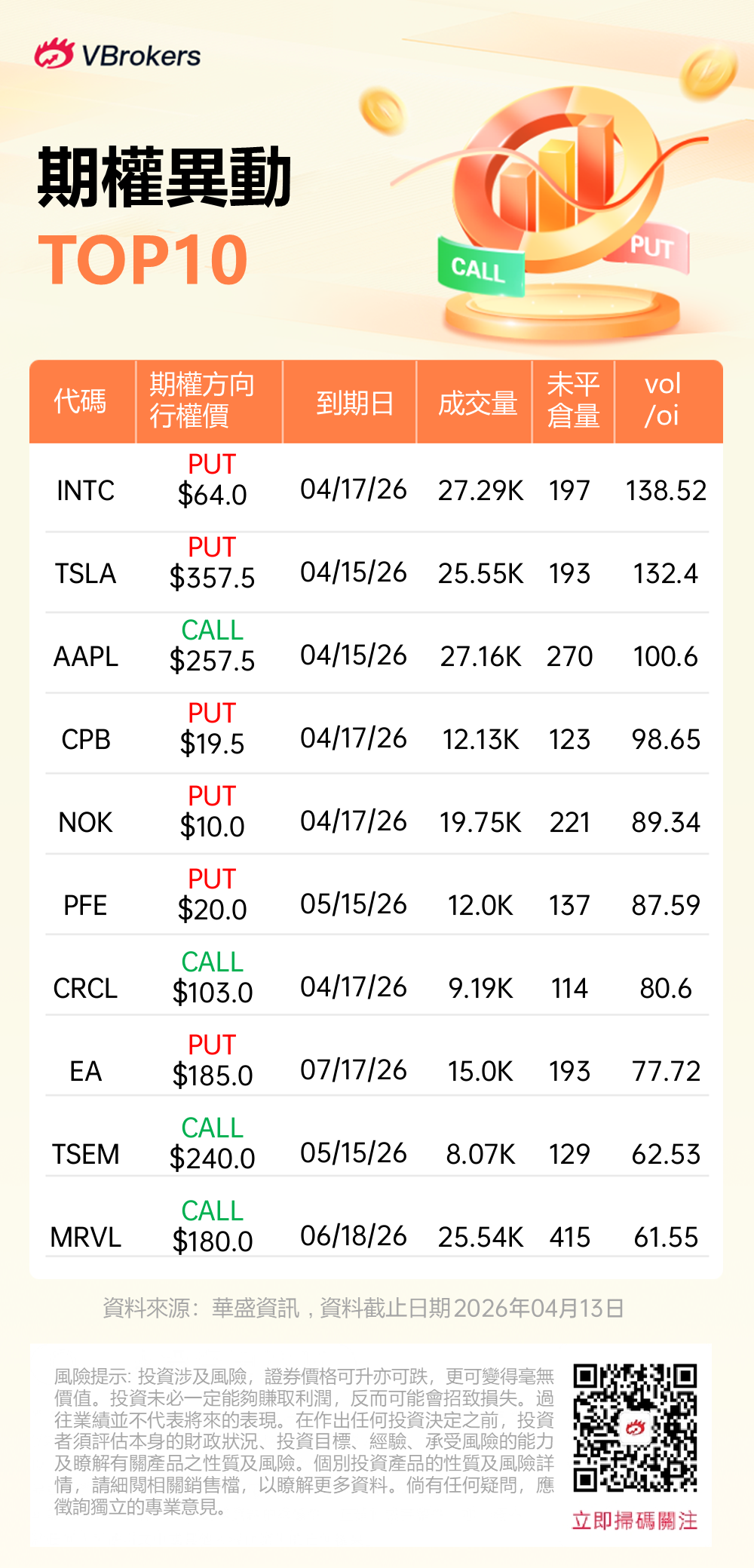 Vol/OI 异动榜(2026.04.13) |