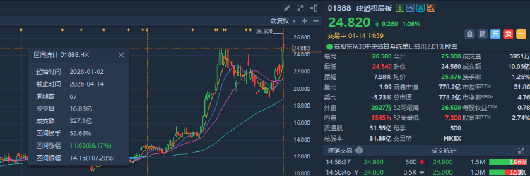 华盛资讯4月14日讯,AI算力需求的爆发正在彻底改变PCB行业的格局。近期,港股PCB概念股持续走强,建滔积层板盘中创下历史新高,年内涨幅已超88%;大族数控日内涨超7%,建滔集团涨近2%,月内累计上涨超23%。