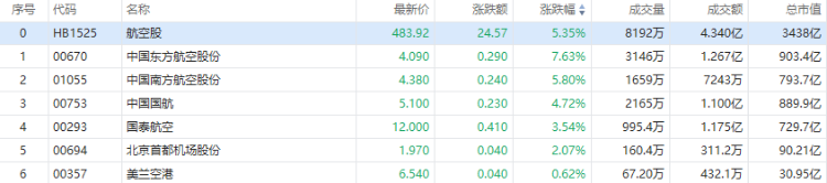 华盛资讯4月15日讯,港股航空股涨幅居前,中国东方航空股份大涨近8%、中国南方航空股份涨近6%,中国国航涨近5%,国泰航空涨逾3%。