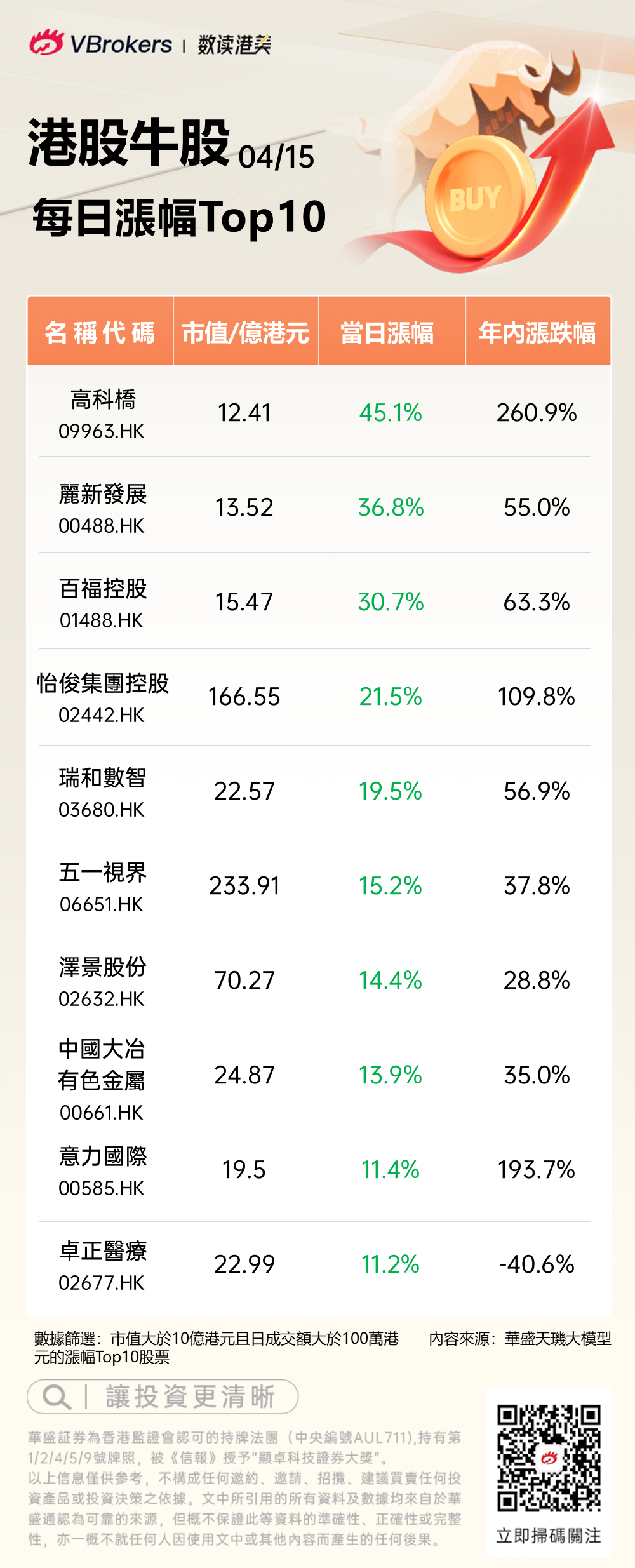 發仔统计了每日港股涨幅Top10,具体名单如下: