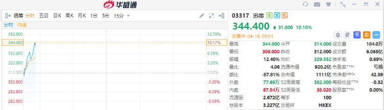 华盛资讯4月16日讯,港股AI应用概念再起升势!迈富时、迅策涨约10%,金蝶国际涨近7%,美图公司涨近3%,MINIMAX-W涨近2%,智谱涨超1%。