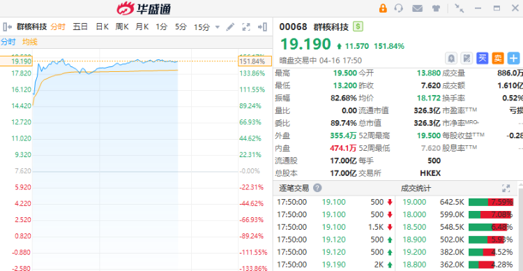 截至上市首日收盘,公司总市值约1627.63亿港元,H股市值约921.53亿港元,首日涨幅为103.42%,全天成交额达45.97亿港元。