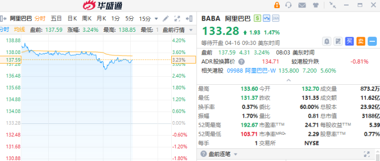 1、Shopify, Inc. Class A:隔夜涨8.3%,收盘价报127.41美元