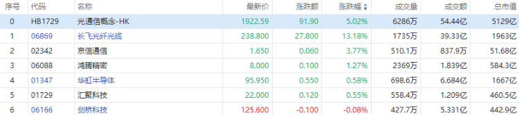 受前述行业利好消息提振,长飞光纤光缆的H股再度强势上扬,涨幅突破10%,而其A股对应标的同期涨幅接近8%,港股表现显著优于A股市场。