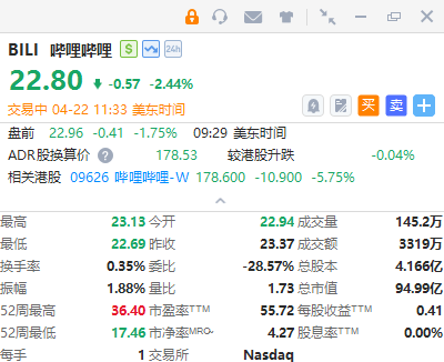 哔哩哔哩、金山云跌逾2%,小鹏集团、网易跌约2%。