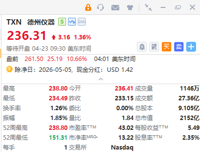 德州仪器盘前大涨10%,Q1业绩全面开花、数据中心营收猛增90%,Q2指引碾压市场预期;