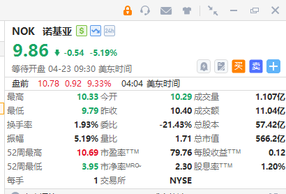 AI转型初见成效!诺基亚盘前大涨9%,Q1盈利超预期,光网络业务销售额同比大增56%。
