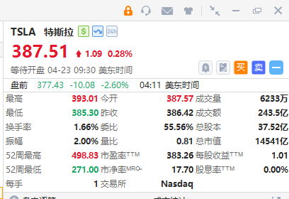 特斯拉盘前跌超2%,特斯拉Q1营收创近三年最高增速,超预期上调2026年资本开支。