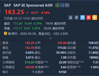 财报公布后,SAP美股ADR盘后上涨约7%。今年以来公司股价累计下跌约32%,本次业绩以稳健执行回应了年初市场对云增长放缓的担忧,投资者对SAP云转型进入预期落地阶段表示认可。