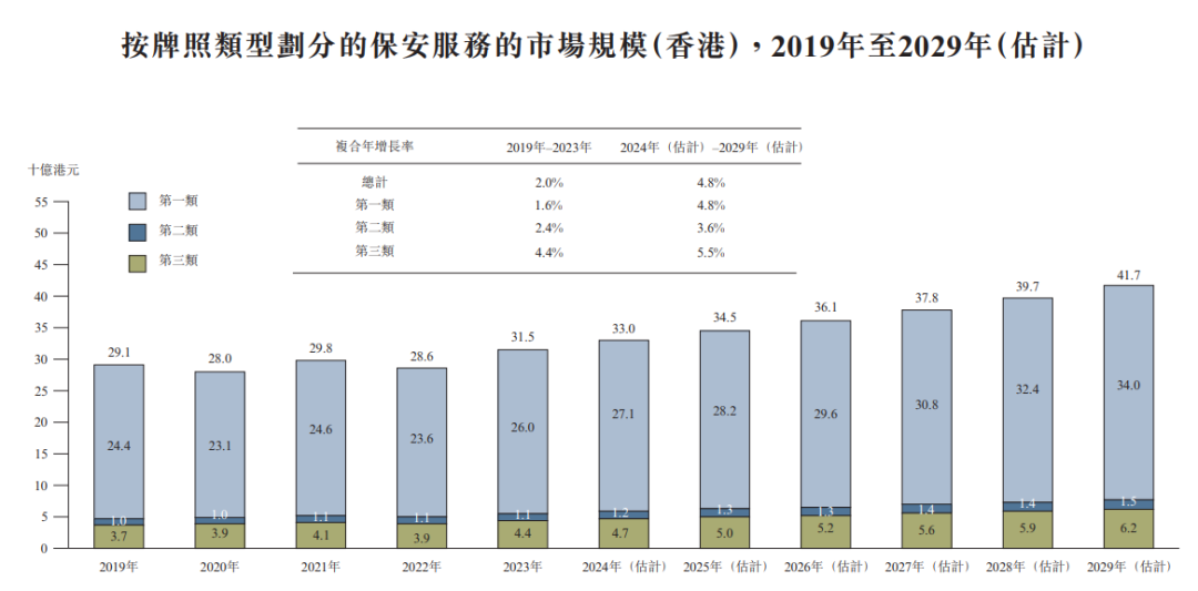 展望未來,預計市場將強勁復甦,第一類及第三類服務於2024年至2029年期間的複合年增長率預計分別約為4.8%及5.5%。第一類服務的增長將受到經濟活動恢復以及基建、住宅及商業項目擴張的推動,而第三類服務將因子字化轉型的持續推進、對技術驅動保安解決方案的依賴增加及對系統集成及維護需求的增長而持續發展。