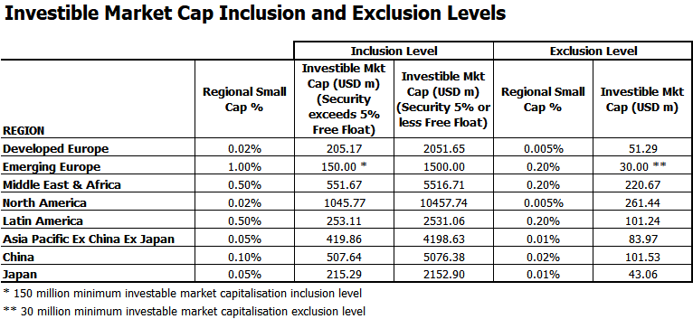 日发布的公告,富时全球股票指数系列的大盘股、小盘股