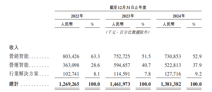 公司主要通過提供營銷智能和營運智能產品及解決方案產生收入。