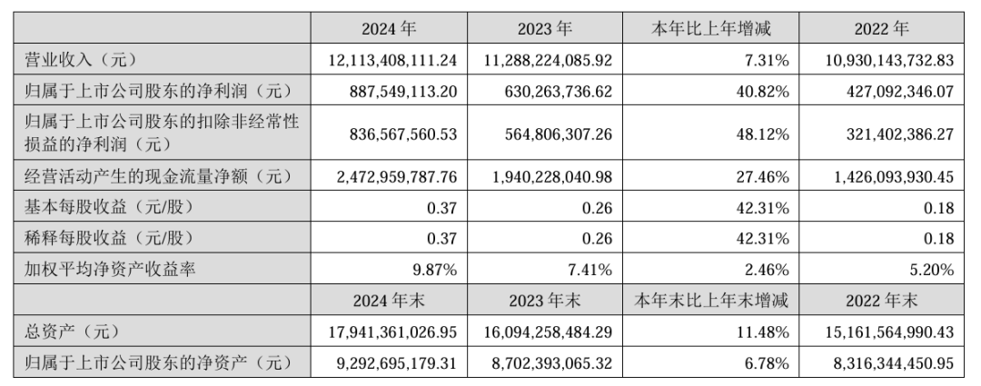 该公司2024年财务表现亮眼:营收121.13亿元(+7.31%),净利润8.9亿元(+40.82%),扣非净利润增速更高达48.12%。盈利能力显着提升,ROE增至9.87%,现金流增长27.46%至24.73亿元。资产规模持续扩张,总资产达179.41亿元(+11.48%),净资产92.93亿元(+6.78%),显示公司在收入稳健增长的同时,盈利能力和运营效率明显优化。