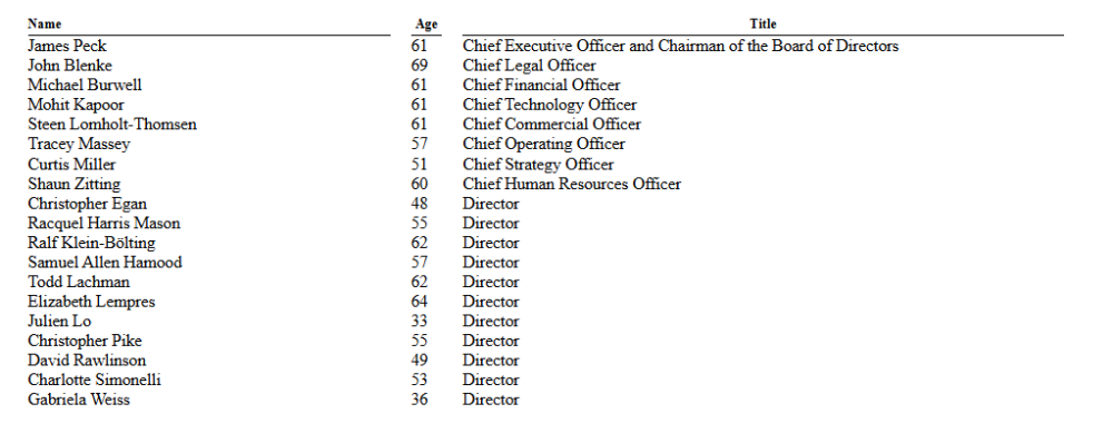James Peck:自2021年3月起担任公司的首席执行官兼董事会主席,曾担任美国三大消费者信用报告机构之一TransUnion和数据分析公司LexisNexis Risk Solutions的首席执行官。