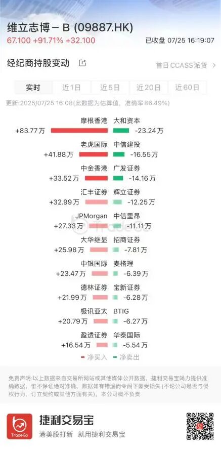 7月25日,维立志博-B(9887.HK)正式在港交所上市。