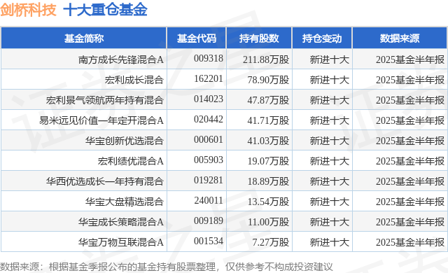 重倉劍橋科技的前十大公募基金請見下表:
