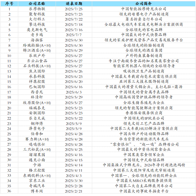 2025年前7個月,日常消費/可選消費行業共計16家企業在香港IPO上市(含3只A+H),合計募資約281億港元,分別佔同期香港IPO的31%及22%。