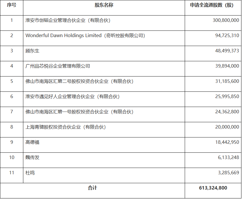 公司11名股东拟将所持合计613,324,800股境内未上市股份转为境外上市股份,并在香港联合交易所上市流通