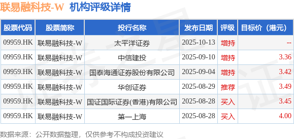 截至2025年10月17日收盤,聯易融科技-W(09959.HK)報收於2.89港元,下跌7.37%,成交量1297.1萬股,成交額3844.24萬港元。投行對該股的評級以增持為主,近90天內共有3家投行給出增持評級,近90天的目標均價為3.54港元。太平洋證券最新一份研報給予聯易融科技-W增持評級。