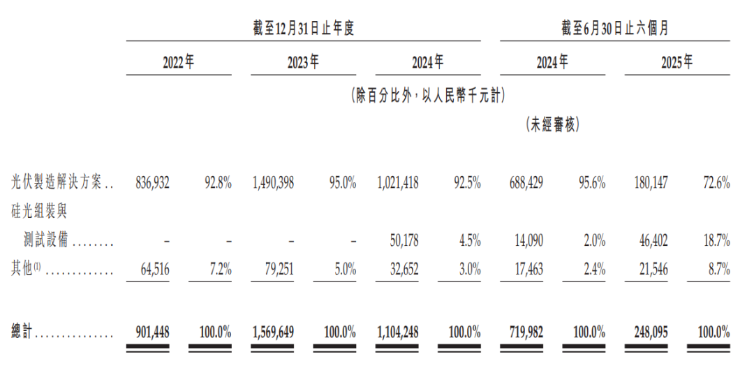 於往績記錄期間,公司的收入主要來自(i)光伏製造解決方案及(ii)用於硅光器件的高精密組裝與測試設備。