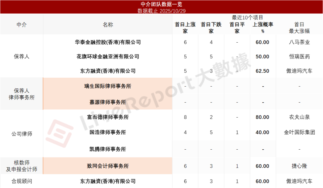 據LiveReport大數據統計,羅博特科中介團隊共計10家,其中保薦人3家,近10家保薦項目數據表現不足;公司律師共計3家,綜合項目數據表現普通。整體而言中介團隊歷史數據表現有待改進。