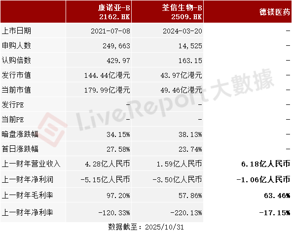 本次選取對比的公司分別為:康諾亞-B(2162.HK)、荃信生物-B(2509.HK)