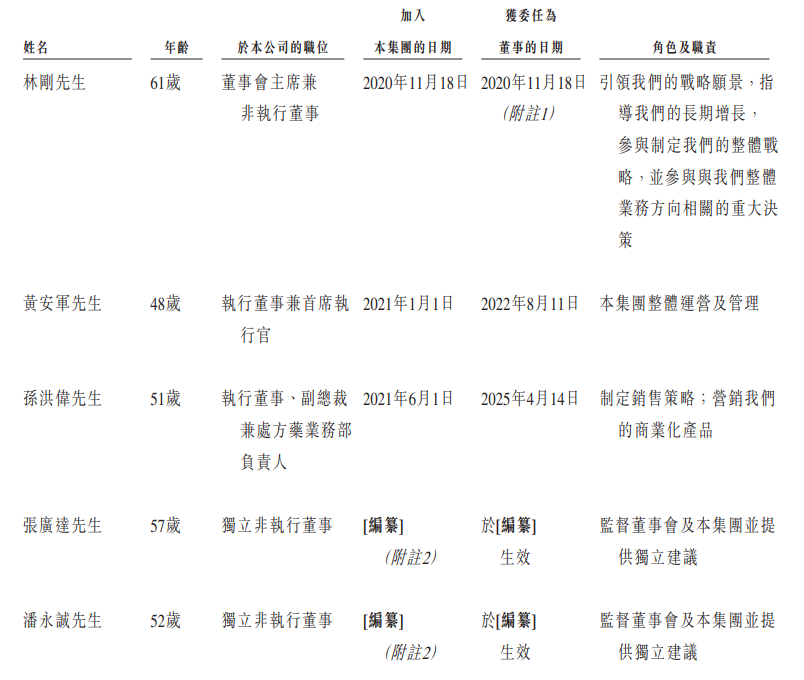 公司董事會由六名董事組成,包括兩名執行董事、一名非執行董事及三名獨立非執行董事。其中林剛為董事會主席兼非執行董事,其主要負責公司的整體戰略,並參與整體業務方向相關的重大決策。