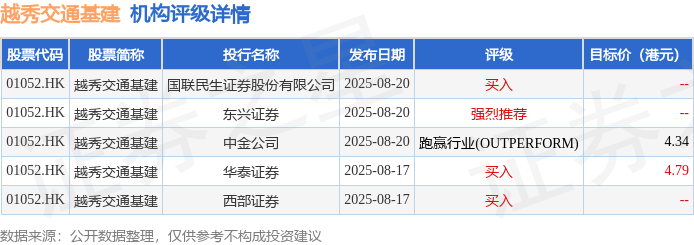 截至2025年11月7日收盤,越秀交通基建(01052.HK)報收於4.47港元,上漲0.22%,成交量89.9萬股,成交額399.89萬港元。投行對該股的評級以買入為主,近90天內共有3家投行給出買入評級,近90天的目標均價為4.56港元。國聯民生證券股份有限公司最新一份研報給予越秀交通基建買入評級。