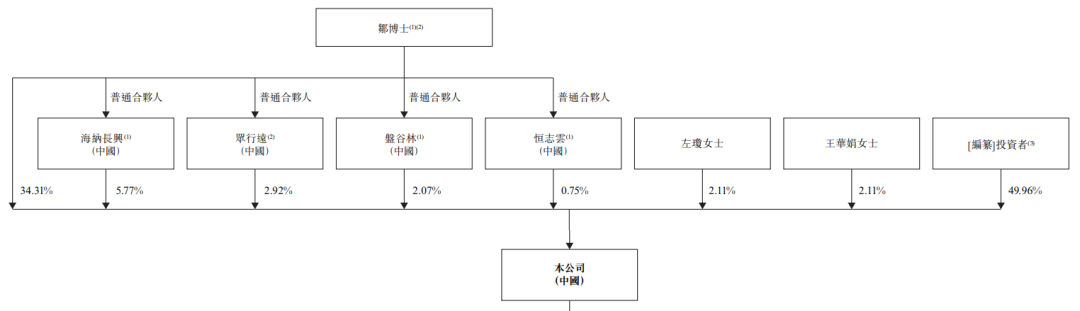 鄒巧根博士直接持股34.31%,並通過海納長興、眾行遠、盤谷林及恆志雲分別持股5.77%、2.92%、2.07%及0.75%,合計持股45.82%;