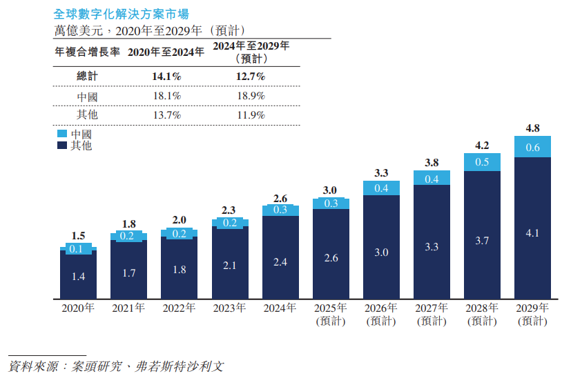 ,過往五年全球數字化解決方案市場保持穩定增長,從