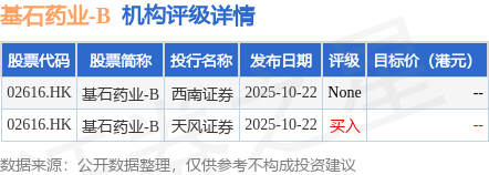投行對該股的評級以買入為主,近90天內共有1家投行給出買入評級。西南證券最新一份研報給予基石藥業-BNone評級。