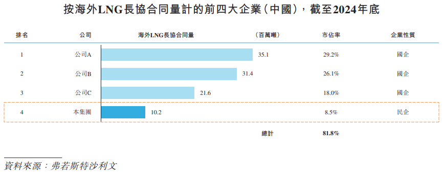截至2024年底,新奧股份海外LNG長協合同簽約量約為10.2百萬噸,佔整體市場份額的8.5%,是中國海外LNG長協合同量最大的民營企業。