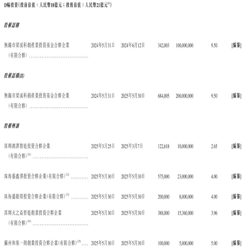 包括小米集團(01810.HK)(8.4%)、博華資本(7.26%)、梁溪科創(14.29%);其他股東包括源明創投、光易投資、國科投資、合創投資、青巖投資等。