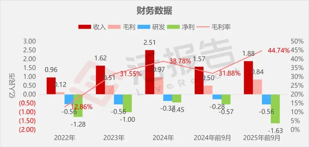 收入分別約為人民幣0.96億、1.62億、2.51億、1.57億、1.88億,2025年前9月同比+19.66%;
