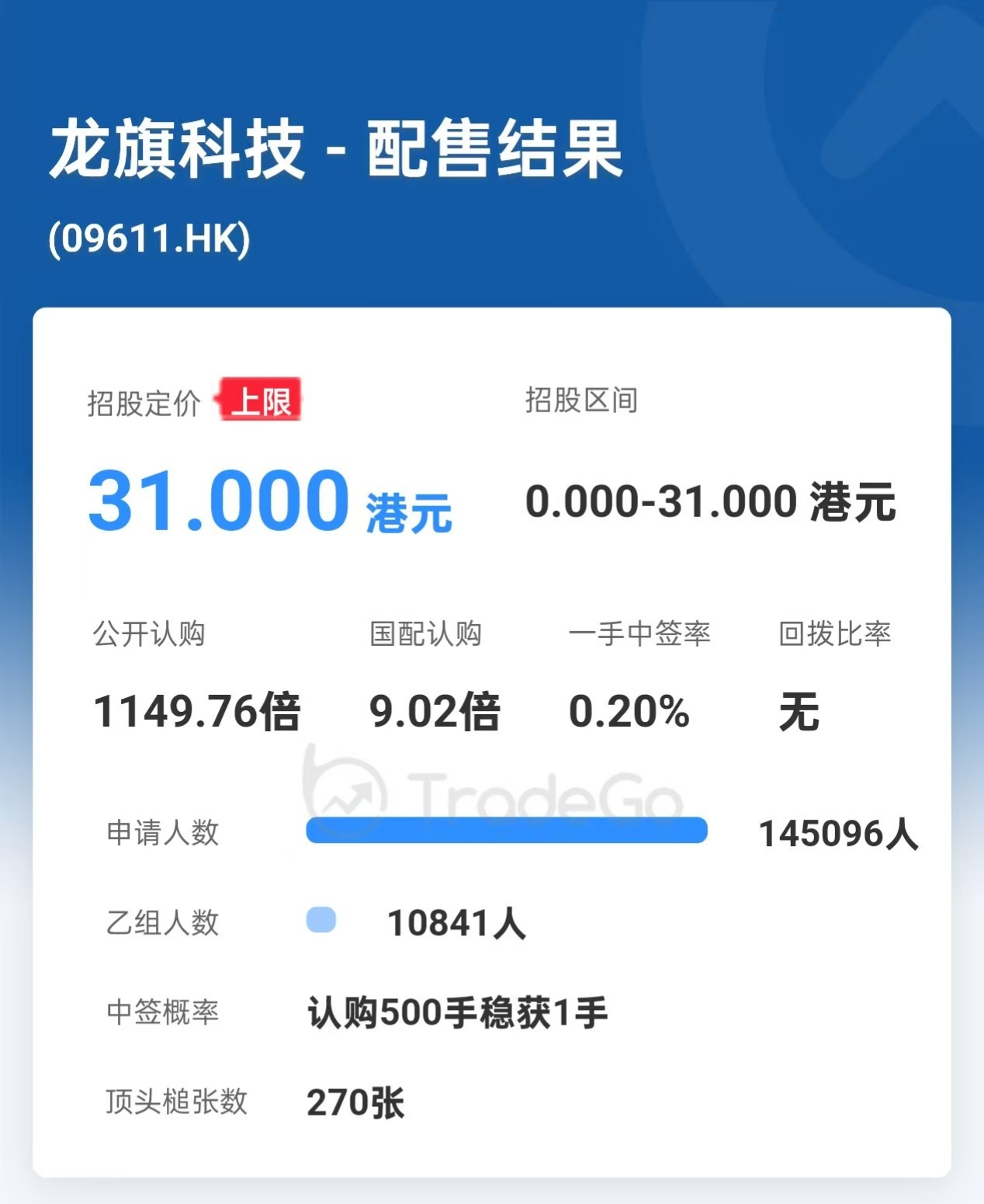 億港元。若按收盤價計,不計手續費,每手中籤賺約